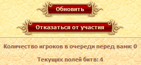 Чтобы попасть на поле битвы, необходимо встать в очередь. Одновременно можно встать сразу в несколько очередей на разные поля битв.