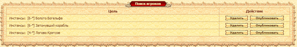 Чтобы найти игроков, заинтересованных в охоте на тех же монстров или в прохождении таких же инстансов, что и вы, выберите нужные объекты в списке и нажмите «Искать».