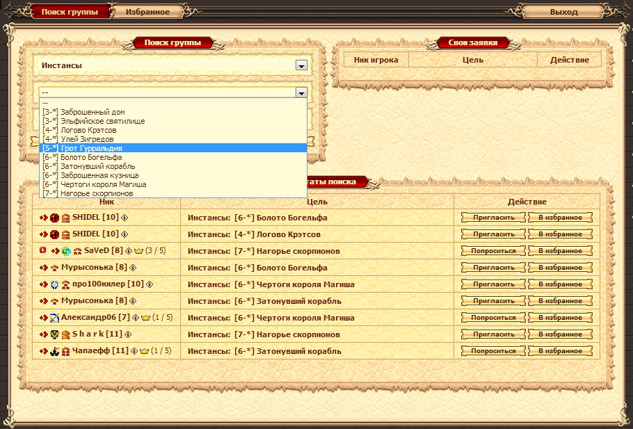 Важно! Одновременно можно подать не более 5 заявок на поиск группы. При входе и выходе из игры, а также при расформировании, вступлении или выходе из группы текущие заявки пропадают.
