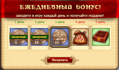 За вход в игру, будучи персонажем 3 и выше уровня, вы получаете приятные бонусы, размер которых будет расти при непрерывном и ежедневном посещении. После получения высшей награды счетчик сбрасывается.